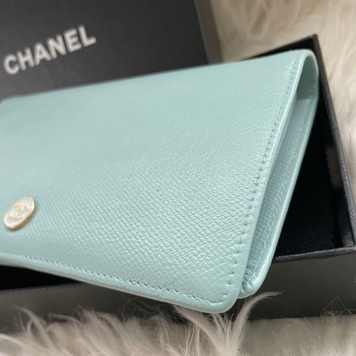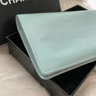 Absolutely love this CHANEL bi-fold wallet! The light blue Coco Mark is stunning, and the quality is impeccable—soft leather with flawless stitching. The Coco button adds a chic touch, and the included guarantee card gives peace of mind. Spacious enough for cards and cash while staying sleek. Shipping was fast, and the seller was super responsive. A perfect luxury piece—highly recommend!