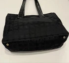 This Chanel Coco Mark tote is stylish and practical—perfect for travel or daily use. The black nylon and leather combo looks sleek, and the two zipper pockets keep things organized. It does show some wear like scuffs, scratches, and a cracked base, but it’s still in solid condition for a pre-loved bag. Shipping is fast, but be aware of potential extra fees. Great for someone who wants designer quality without paying full price!