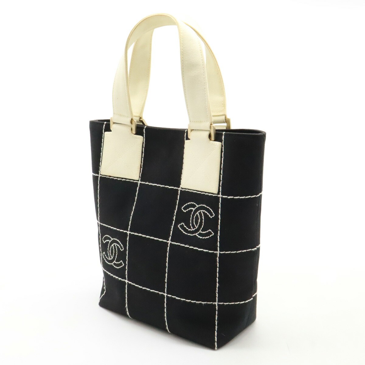 Chanel Coco Mark Tote Bag Canvas Black White Used Key Features - Brand: Not specified - Product Type: Tote Bag - Model/Name: Not specified - Material: Canvas - Color: Black/White - Size: W19cm x H26cm x D9.5cm - Condition: Used, AB grade - Features: Interior pocket, comes with storage bag - Condition Details: Slight fuzziness, dents, corner wear, edge scratches, storage odor, glue stains, pen marks inside pocket, yellowed handles, light stains, minor hardware scratches - Additional Notes: Serial seal included - Description: Cute tote bag inspired by a chocolate bar design, with a spacious gusset for ample storage. Perfect for outings, showing signs of use but still in good condition for continued use. Specifications Brand chanel Country Japan Product Description About Item This item will be shipped from Gifu Prefecture, Japan. Payment Supports managed payments Please pay within 5 days after auction is finished. About Us We are located in Japan. It's our pleasure to make you happy by proposing our recommend item. If you have any questions or request about items; please feel free to ask us. International Buyers - Please Note: -Import duties; taxes; and charges are not included in the item price or shipping charges. These charges are the buyer's responsibility. -Please check with your country's customs office to determine what these additional costs will be prior to bidding/buying. -These charges are normally collected by the delivering freight (shipping) company or when you pick the item up - do not confuse them for additional shipping charges. -We do not mark merchandise values below value or mark items as - gifts - The US and International government regulations prohibit such behavior. Thank you for your understanding.