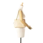 $ 376.2Tommy Hilfiger beige raffia and navy leather tote bag for women NWT