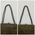 Absolutely love this Chanel bag! The rich brown suede and leather combo is timeless, and the chain strap adds a chic touch. Despite minor wear like peeling on the clasp and some fraying, it’s still in great condition—perfect for everyday luxury. The size is ideal, spacious enough for essentials while keeping an elegant silhouette. A must-have for any Chanel lover looking for a stylish, pre-loved piece.