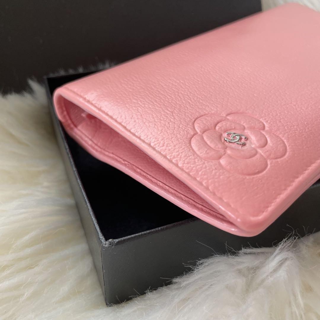Absolutely love this Chanel wallet! The pink camellia design is stunning and the quality feels luxurious. Perfect size for everyday use, fits cards and cash neatly. Shipping was smooth and the seller’s attention to detail is impressive. Highly recommend!