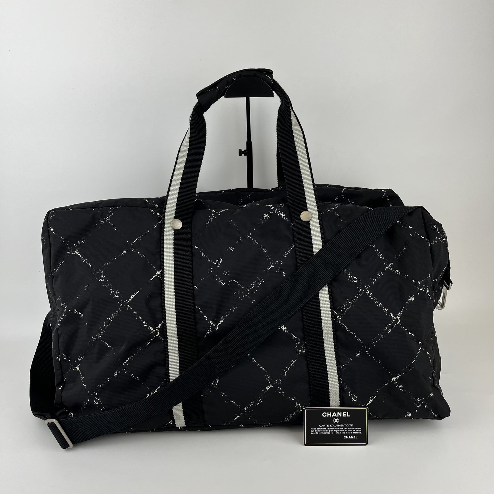 Chanel Coco Travel Line Boston Bag Shoulder Handbag Black Nylon Number 5 Vint-Cz