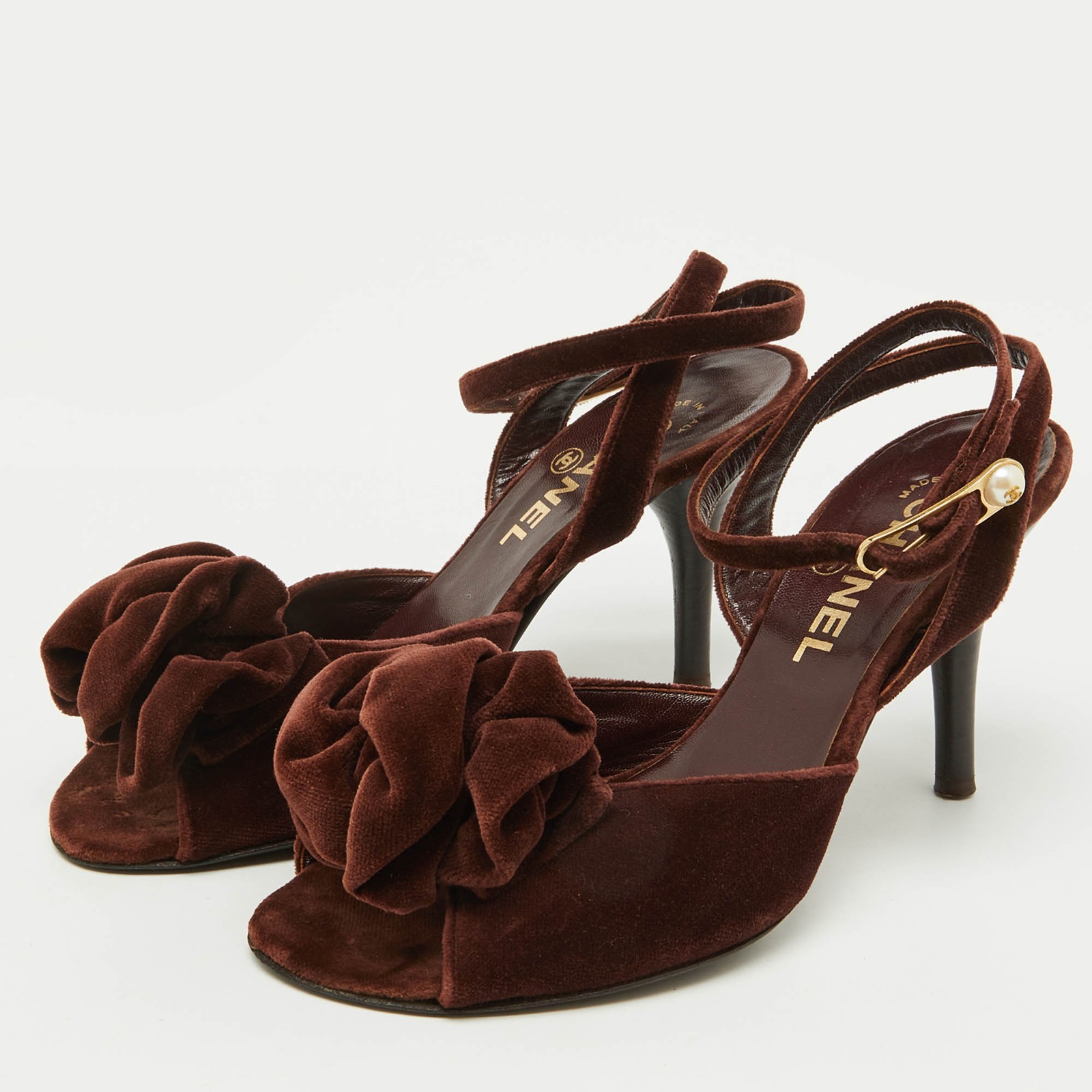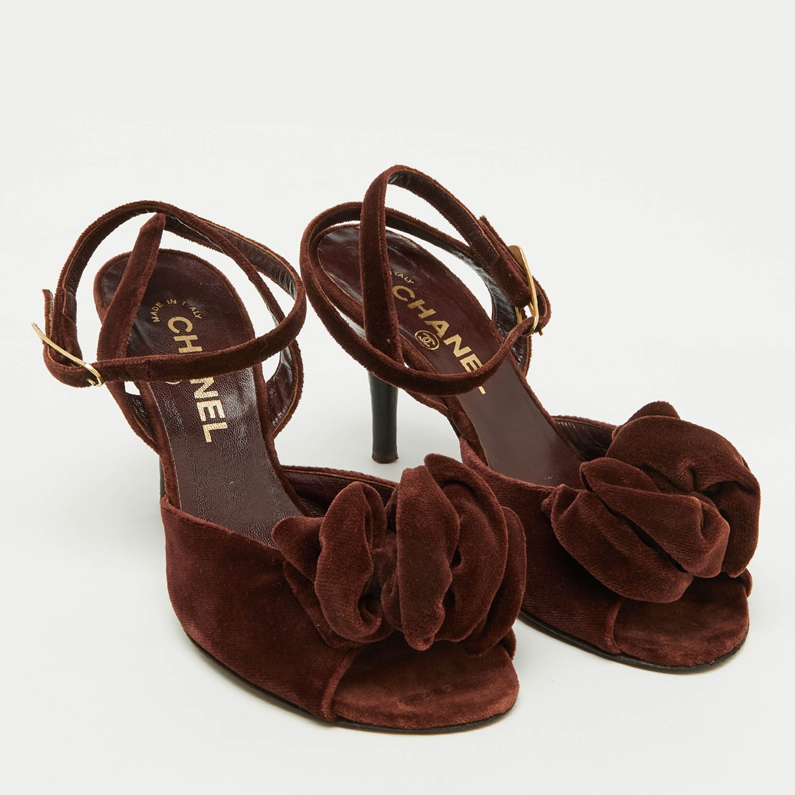These sandals will frame your feet in an elegant manner. Crafted from quality materials, they flaunt a classy display, comfortable insoles and durable heels.Certified by The Luxury Closet - This item has gone through a detailed authentication process overseen by our experts. We offer a lifetime guarantee of authenticity on all our items. Import duties, taxes and charges are not included in the item price. These charges are the buyers responsibility. Please check with your country’s customs office to determine what these additional cost will be prior to buying. Our eBay Store About Us Contact Us Add to Favorite Sellers Chanel Dark Brown Velvet Ankle Strap Sandals Size 36.5 $212.3 These sandals will frame your feet in an elegant manner. Crafted from quality materials, they flaunt a classy display, comfortable insoles and durable heels. Product Details Brand Color Brown Dimensions Material Velvet Size 36.5 Outsole Width 9 cm Outsole Length 23 cm Heel Height 8.5 cm Includes The Luxury Closet Packaging Certified by The Luxury Closet This item has gone through a detailed authentication process overseen by our experts. We offer a lifetime guarantee of authenticity on all our items. How We Check The in-house team of experts at The Luxury Closet is highly trained to verify the authenticity and the condition of the luxury products. They ensure that only 100% authentic items are put on sale.The evaluation process is unique with its own mix of assessment criteria and differs according to the category. Each item is evaluated based on the following combination of hallmarks, hardware, stitching, symmetry, material, craftsmanship, stamping, codes, hologram stickers, and packaging. Our authenticators also check if the items have been modified or amended (e.g., aftermarket diamonds, replaced batteries, repaired bags, etc.) International Buyers Import duties, taxes and charges are not included in the item price. These charges are the buyers responsibility. Please check with your country’s customs office to determine what these additional cost will be prior to buying.