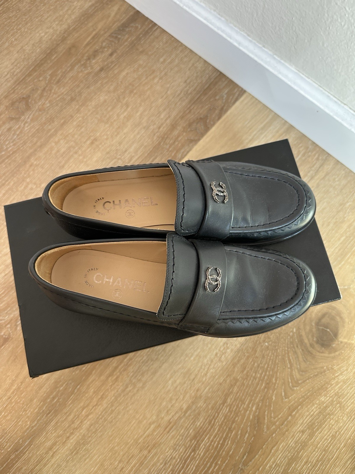 Chanel Dark Navy Blue Moccasin Loafer size EU38.5
