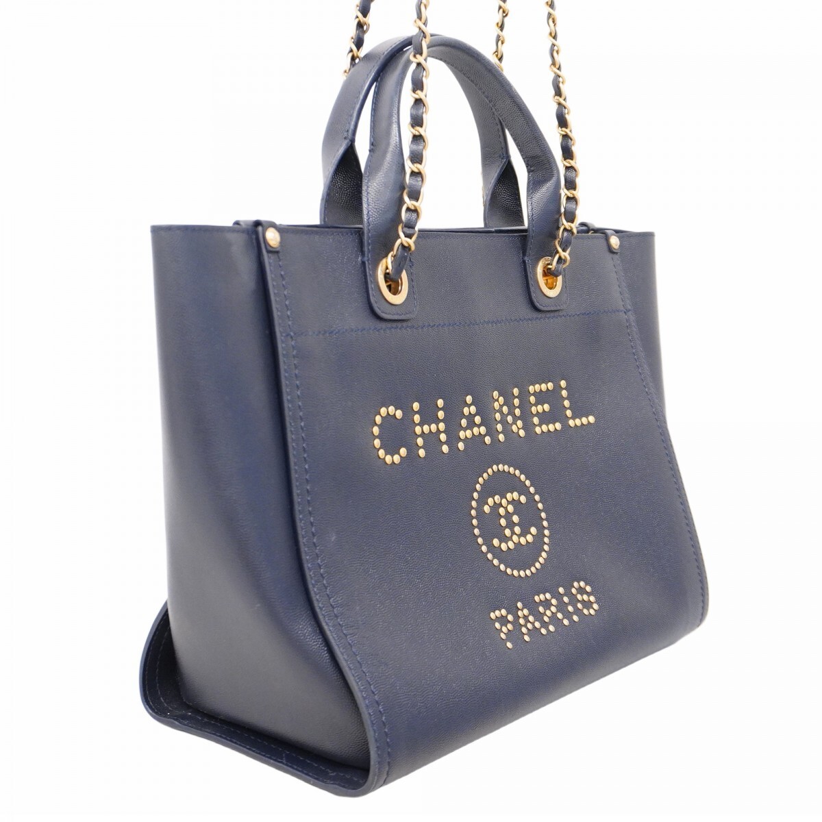 Absolutely love this Chanel Deauville tote! The navy color is elegant and versatile, perfect for any occasion. The chain shoulder strap adds a chic touch, and the quality is outstanding—true Chanel craftsmanship. Shipping was fast, and the seller was professional. Highly recommend for anyone looking for a stylish, practical bag!