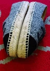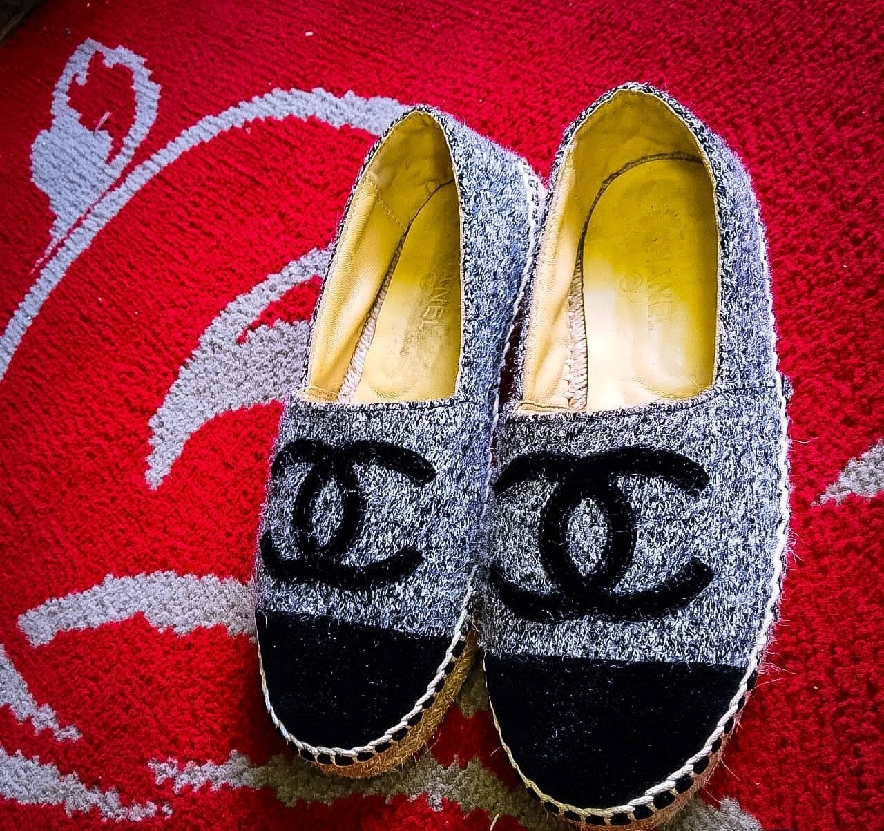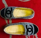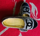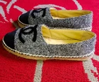 The Chanel Authentic Wool Velvet Espadrille in Gray Black is a luxurious and stylish flat shoe perfect for various occasions such as travel, casual outings, and even workwear. Made in Spain with high-quality materials like tweed fabric and leather lining, these espadrilles feature a round toe shape and slip-on closure for comfort and ease of wear. The signature Chanel logo accents add a touch of elegance to the design, making them a chic addition to any wardrobe. Ideal for year-round wear, these espadrilles are a versatile and fashionable choice for women who value both style and comfort.