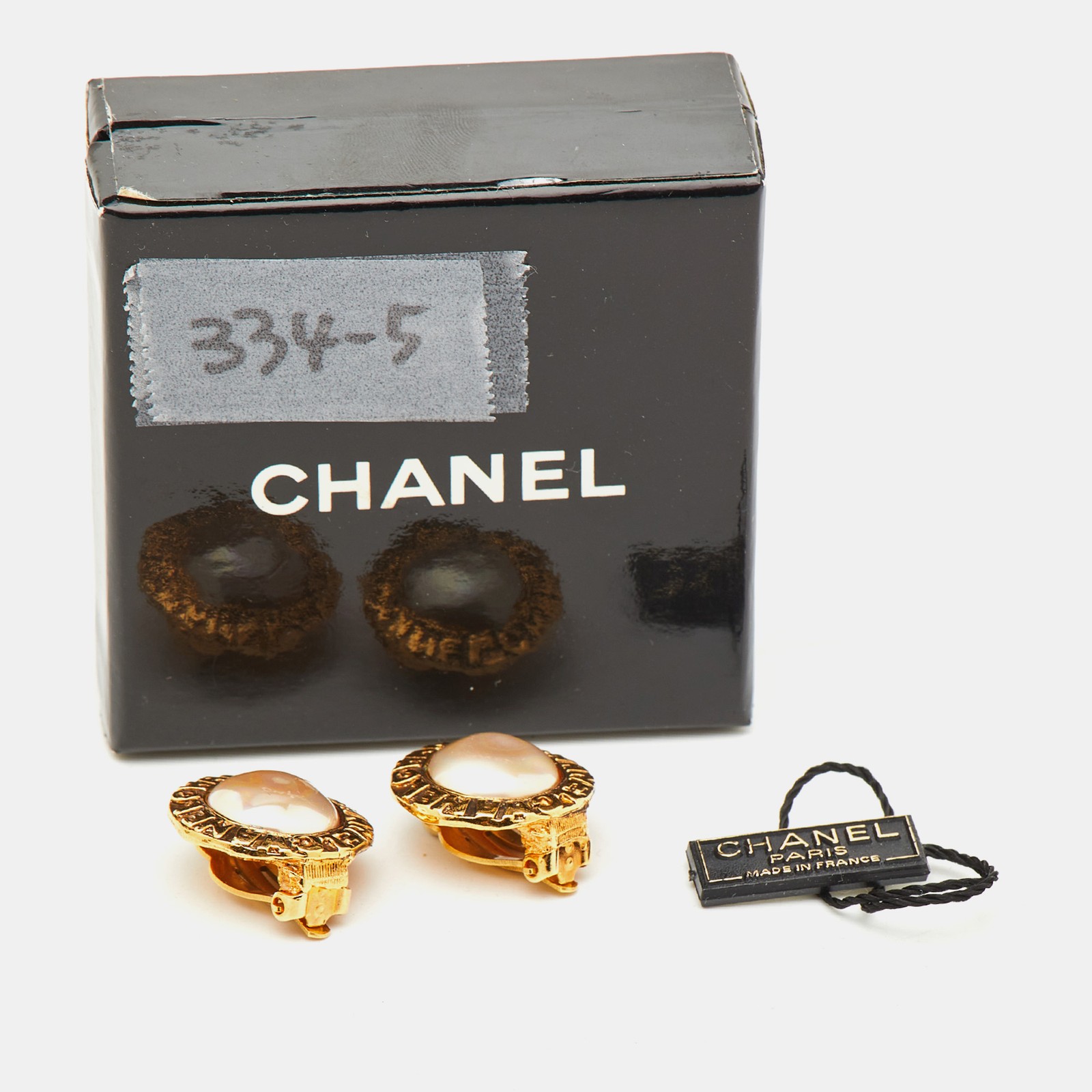 These round Chanel clip on earrings feature luminous faux pearls set in gold tone casing. Elegant and refined, they nod to vintage charm with enduring appeal.Certified by The Luxury Closet - This item has gone through a detailed authentication process overseen by our experts. We offer a lifetime guarantee of authenticity on all our items. Import duties, taxes and charges are not included in the item price. These charges are the buyers responsibility. Please check with your country’s customs office to determine what these additional cost will be prior to buying. Our eBay Store About Us Contact Us Add to Favorite Sellers Chanel Faux Pearl Gold Tone Round Clip-on earirngs $595.1 These round Chanel clip on earrings feature luminous faux pearls set in gold tone casing. Elegant and refined, they nod to vintage charm with enduring appeal. Product Details Brand Color Gold Dimensions Material Faux Pearl Size Outsole Width Outsole Length Heel Height Includes Certified by The Luxury Closet This item has gone through a detailed authentication process overseen by our experts. We offer a lifetime guarantee of authenticity on all our items. How We Check The in-house team of experts at The Luxury Closet is highly trained to verify the authenticity and the condition of the luxury products. They ensure that only 100% authentic items are put on sale.The evaluation process is unique with its own mix of assessment criteria and differs according to the category. Each item is evaluated based on the following combination of hallmarks, hardware, stitching, symmetry, material, craftsmanship, stamping, codes, hologram stickers, and packaging. Our authenticators also check if the items have been modified or amended (e.g., aftermarket diamonds, replaced batteries, repaired bags, etc.) International Buyers Import duties, taxes and charges are not included in the item price. These charges are the buyers responsibility. Please check with your country’s customs office to determine what these additional cost will be prior to buying.