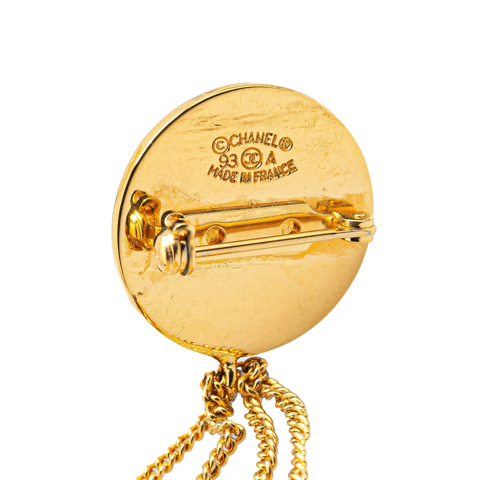 This brooch features a gold tone metal body and back pin closure. Condition Details: Exterior Back Scratched. Lock Scratched. Embellishment Scratched. Exterior Front Scratched. Dimensions: Length: 7.300 cm Width: 3.300 cm Height: 0.000 cm SKU: 101017947 International Buyers - Please Note: Import duties, taxes, and customs fees are not included in the item price. These are the buyer's responsibility. Please check with your local customs office to understand any extra costs before buying. These fees are usually collected by the shipping company or when you pick up your item - they are not extra shipping charges.