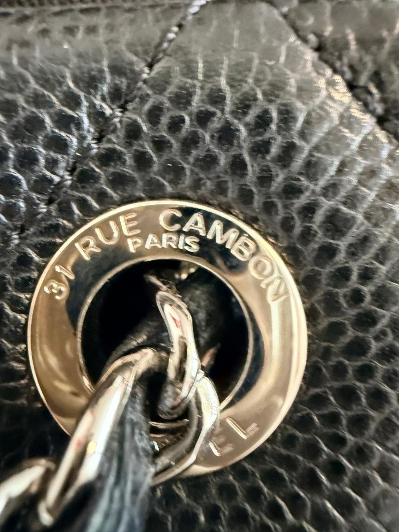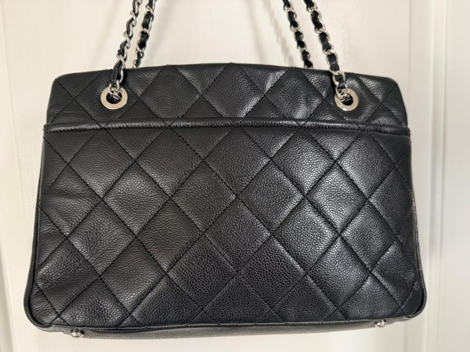 Offered for sale is an authentic Chanel Grand Shopping Tote (GST) in classic black caviar leather with silver-tone hardware. This timeless Chanel tote features the iconic quilted design with a large stitched CC logo on the front and leather-interwoven chain shoulder straps. The GST is a discontinued Chanel style, making it highly sought after for both everyday use and collection. This bag is in mint condition . The exterior caviar leather is clean, structured, and free from corner wear, scuffs, or scratches. Quilting is crisp throughout and the bag maintains its original shape with no sagging. Hardware remains bright with no tarnish. The interior is clean and odor-free. The serial sticker is intact and legible (18-series, 2013 production) . The interior features a spacious open compartment with a zip pocket and slip pockets, making it ideal for daily, work, or travel use. Crafted in Italy , this bag showcases Chanel’s exceptional craftsmanship and durability. Includes : Original dust bag. Origin : Made in Italy Closure: Open top Condition: Mint Style: Tote / Shoulder bag Stored in a smoke-free, climate-controlled home. Guaranteed authentic. Please review all photos carefully as they are apart of the description. Happy to answer any questions!