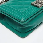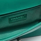 Our eBay Store About Us Contact Us Add to Favorite Sellers Chanel Green Quilted Leather Small Boy Flap Bag Introduced as a part of the Chanel Fall/Winter collection of 2011, the Boy flap bag embodies an alluring appeal and is complemented with exquisite details. This green creation is meticulously crafted from quilted leather and features side panelling, a chain-leather shoulder strap, and dark ruthenium-tone hardware. Lined with fabric, the perfectly sized interior of this bag is secured by the signature 'CC' lock. Product Details Brand Chanel Includes Original Dustbag, Original Box Certified by The Luxury Closet This item has gone through a detailed authentication process overseen by our experts. We offer a lifetime guarantee of authenticity on all our items. How We Check The in-house team of experts at The Luxury Closet is highly trained to verify the authenticity and the condition of the luxury products. They ensure that only 100% authentic items are put on sale.The evaluation process is unique with its own mix of assessment criteria and differs according to the category. Each item is evaluated based on the following combination of hallmarks, hardware, stitching, symmetry, material, craftsmanship, stamping, codes, hologram stickers, and packaging. Our authenticators also check if the items have been modified or amended (e.g., aftermarket diamonds, replaced batteries, repaired bags, etc.) Please note that this handbag may have a perfume scent, as it was stored and packaged in Dubai where such fragrances are commonly used. International Buyers Import duties, taxes and charges are not included in the item price. These charges are the buyers responsibility. Please check with your country’s customs office to determine what these additional cost will be prior to buying.