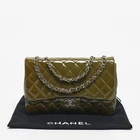 In an eye catching green patent finish, this quilted favorite offers a bold twist on a timeless design. The oversized silhouette and silver tone hardware embody the houses luxe Parisian spirit.Certified by The Luxury Closet - This item has gone through a detailed authentication process overseen by our experts. We offer a lifetime guarantee of authenticity on all our items. Import duties, taxes and charges are not included in the item price. These charges are the buyers responsibility. Please check with your country’s customs office to determine what these additional cost will be prior to buying. Our eBay Store About Us Contact Us Add to Favorite Sellers Chanel Green Quilted Patent Leather Jumbo Classic Single Flap Bag $4858.7 In an eye catching green patent finish, this quilted favorite offers a bold twist on a timeless design. The oversized silhouette and silver tone hardware embody the houses luxe Parisian spirit. Product Details Brand Color Green Dimensions Material Patent Leather Size Medium Outsole Width Outsole Length Heel Height Includes Certified by The Luxury Closet This item has gone through a detailed authentication process overseen by our experts. We offer a lifetime guarantee of authenticity on all our items. How We Check The in-house team of experts at The Luxury Closet is highly trained to verify the authenticity and the condition of the luxury products. They ensure that only 100% authentic items are put on sale.The evaluation process is unique with its own mix of assessment criteria and differs according to the category. Each item is evaluated based on the following combination of hallmarks, hardware, stitching, symmetry, material, craftsmanship, stamping, codes, hologram stickers, and packaging. Our authenticators also check if the items have been modified or amended (e.g., aftermarket diamonds, replaced batteries, repaired bags, etc.) International Buyers Import duties, taxes and charges are not included in the item price. These charges are the buyers responsibility. Please check with your country’s customs office to determine what these additional cost will be prior to buying.