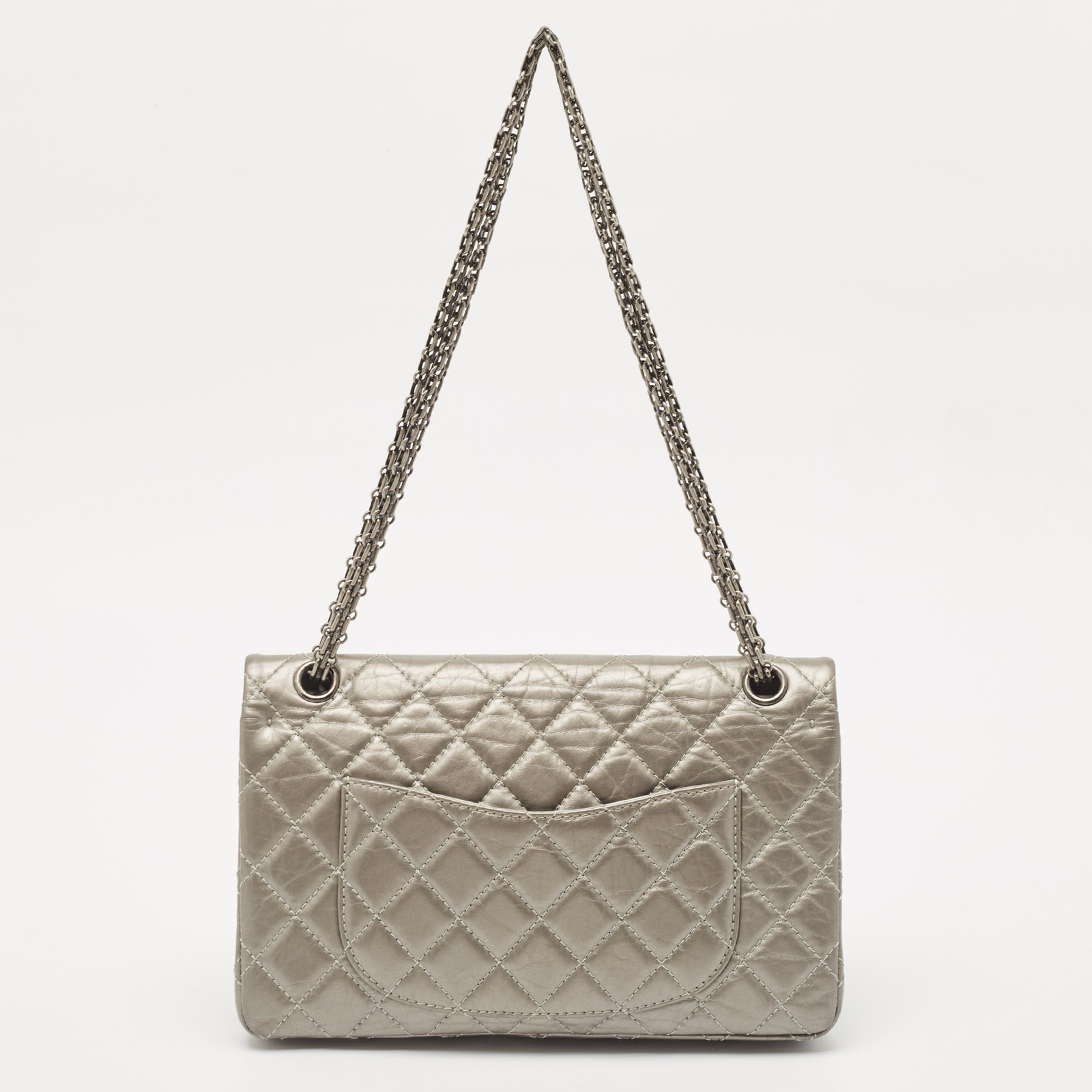 Imbued with traditional details, the Reissue 2.55 bag from Chanel is iconic and one of the most admired collections of the brand. The chain shoulder strap of this bag will offer you an easy carrying experience. Made from quilted aged leather, it flaunts dark ruthenium tone hardware and a branded turn lock on the front. The spacious leather lined interior ensures the neat storing of your essentials and it is secured with a branded lock closure on the front.Certified by The Luxury Closet - This item has gone through a detailed authentication process overseen by our experts. We offer a lifetime guarantee of authenticity on all our items. Import duties, taxes and charges are not included in the item price. These charges are the buyers responsibility. Please check with your country’s customs office to determine what these additional cost will be prior to buying. Our eBay Store About Us Contact Us Add to Favorite Sellers Chanel Grey Quilted Aged Leather 226 Reissue 2.55 Flap Bag $3817 Imbued with traditional details, the Reissue 2.55 bag from Chanel is iconic and one of the most admired collections of the brand. The chain shoulder strap of this bag will offer you an easy carrying experience. Made from quilted aged leather, it flaunts dark ruthenium tone hardware and a branded turn lock on the front. The spacious leather lined interior ensures the neat storing of your essentials and it is secured with a branded lock closure on the front. Product Details Brand Color Grey Dimensions Material Leather Size Outsole Width Outsole Length Heel Height Includes Certified by The Luxury Closet This item has gone through a detailed authentication process overseen by our experts. We offer a lifetime guarantee of authenticity on all our items. How We Check The in-house team of experts at The Luxury Closet is highly trained to verify the authenticity and the condition of the luxury products. They ensure that only 100% authentic items are put on sale.The evaluation process is unique with its own mix of assessment criteria and differs according to the category. Each item is evaluated based on the following combination of hallmarks, hardware, stitching, symmetry, material, craftsmanship, stamping, codes, hologram stickers, and packaging. Our authenticators also check if the items have been modified or amended (e.g., aftermarket diamonds, replaced batteries, repaired bags, etc.) International Buyers Import duties, taxes and charges are not included in the item price. These charges are the buyers responsibility. Please check with your country’s customs office to determine what these additional cost will be prior to buying.