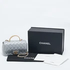 Classic, refined, and effortlessly chic, the Chanel bag with Top Handle is the epitome of luxury. Featuring Chanels iconic diamond quilted leather and the signature interlocking CC clasp, this bag offers a perfect blend of elegance and versatility. The top handle provides added functionality, making it a timeless piece for any fashion forward wardrobe.Certified by The Luxury Closet - This item has gone through a detailed authentication process overseen by our experts. We offer a lifetime guarantee of authenticity on all our items. Import duties, taxes and charges are not included in the item price. These charges are the buyers responsibility. Please check with your country’s customs office to determine what these additional cost will be prior to buying. Our eBay Store About Us Contact Us Add to Favorite Sellers Chanel Grey Quilted Leather Flap Bag Top Handle Bag $6149 Classic, refined, and effortlessly chic, the Chanel bag with Top Handle is the epitome of luxury. Featuring Chanels iconic diamond quilted leather and the signature interlocking CC clasp, this bag offers a perfect blend of elegance and versatility. The top handle provides added functionality, making it a timeless piece for any fashion forward wardrobe. Product Details Brand Color Grey Dimensions Height: 13 cm, Width: 6 cm, Length: 20 cm Material Leather Size Outsole Width Outsole Length Heel Height Includes Original Dustbag, Original Box, Info Booklet Certified by The Luxury Closet This item has gone through a detailed authentication process overseen by our experts. We offer a lifetime guarantee of authenticity on all our items. How We Check The in-house team of experts at The Luxury Closet is highly trained to verify the authenticity and the condition of the luxury products. They ensure that only 100% authentic items are put on sale.The evaluation process is unique with its own mix of assessment criteria and differs according to the category. Each item is evaluated based on the following combination of hallmarks, hardware, stitching, symmetry, material, craftsmanship, stamping, codes, hologram stickers, and packaging. Our authenticators also check if the items have been modified or amended (e.g., aftermarket diamonds, replaced batteries, repaired bags, etc.) International Buyers Import duties, taxes and charges are not included in the item price. These charges are the buyers responsibility. Please check with your country’s customs office to determine what these additional cost will be prior to buying.