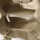 CHANEL In The Mix handbag in a soft beige color with a matte gold Coco Mark. Made of vintage calfskin leather. This bag is a very practical size, able to hold items such as a water bottle. There is a feeling of use, including light dirt on the handle. There is a red/pink stain inside the small pocket (image 9). Includes a removable shoulder strap that is approximately 27.56 inches. The size is approximately W11.42 x H7.87 x D5.91 inches. Comes with a guarantee card and serial sticker. I promise fast shipping via FedEx or DHL as soon as possible! Import duties, taxes and charges are not included in the item price or shipping charges. These charges are the buyer’s responsibility. These charges are normally collected by the delivering freight (shipping) company or when you pick the item up - do not confuse them for additional shipping charges.