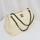 Chanel Ivory Leather Handbag with Silver Chain Hardware and Coco Mark 223948