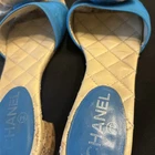 The Chanel slides sandals in size 38 are a luxurious and stylish choice for women. Made in Italy with high-quality leather, these sandals feature a slip-on closure and a mid-height chunky platform heel. The blue color and flower accents add a touch of elegance to the design. These sandals are perfect for adding a chic and comfortable option to any summer outfit, with the added luxury of being a Chanel product.