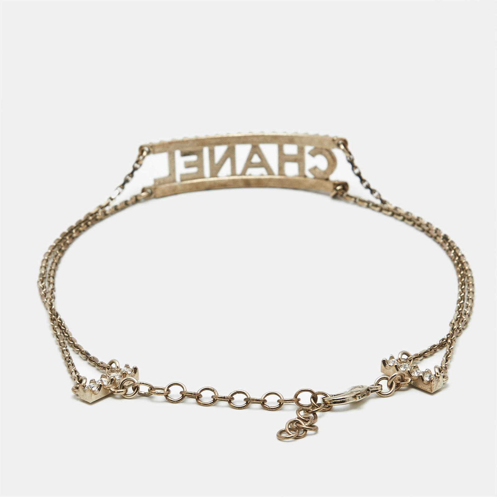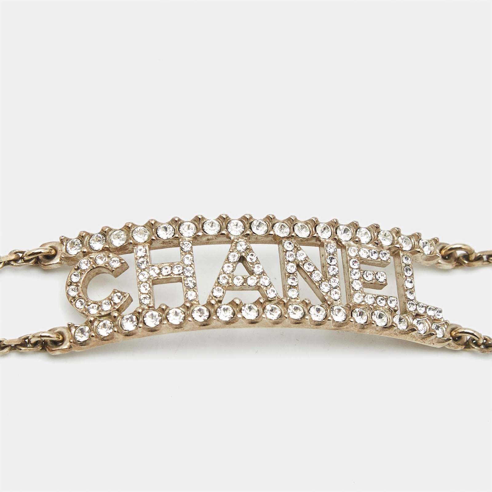 Our eBay Store About Us Contact Us Add to Favorite Sellers Chanel Logo Crystals Gold Tone Choker Necklace This Chanel choker in gold tone is embellished with shimmering crystals and a bold logo centerpiece. Sophisticated yet edgy, it’s made to sit beautifully at the collarbone for high-impact styling. Product Details Brand Chanel Includes Original Box Material Crystals Certified by The Luxury Closet This item has gone through a detailed authentication process overseen by our experts. We offer a lifetime guarantee of authenticity on all our items. How We Check The in-house team of experts at The Luxury Closet is highly trained to verify the authenticity and the condition of the luxury products. They ensure that only 100% authentic items are put on sale.The evaluation process is unique with its own mix of assessment criteria and differs according to the category. Each item is evaluated based on the following combination of hallmarks, hardware, stitching, symmetry, material, craftsmanship, stamping, codes, hologram stickers, and packaging. Our authenticators also check if the items have been modified or amended (e.g., aftermarket diamonds, replaced batteries, repaired bags, etc.) International Buyers Import duties, taxes and charges are not included in the item price. These charges are the buyers responsibility. Please check with your country’s customs office to determine what these additional cost will be prior to buying.