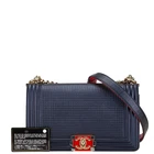 This stunning Chanel Matelasse Boy bag in navy with gold hardware is a timeless piece! The leather is luxurious, the craftsmanship impeccable, and the size is perfect for everyday wear. The gold accents add a touch of elegance, making it versatile for both casual and formal looks. The shipping was fast, and the seller was professional. Worth every penny!