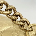 This Chanel shoulder bag is absolutely stunning! The calfskin leather feels luxurious, and the champagne gold color is so elegant. The chain strap adds a chic touch, making it perfect for any occasion. Despite being pre-owned, it’s in great condition with only minor traces of use. The size is practical yet stylish—fits daily essentials comfortably. A timeless piece that elevates any outfit!