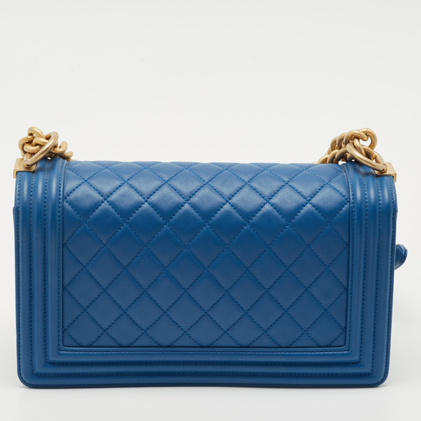 Chanel’s Medium Boy flap bag comes in blue quilted leather with the bold, structured frame and chunky chain that define the line. A striking piece that blends edge and elegance.Certified by The Luxury Closet - This item has gone through a detailed authentication process overseen by our experts. We offer a lifetime guarantee of authenticity on all our items. Import duties, taxes and charges are not included in the item price. These charges are the buyers responsibility. Please check with your country’s customs office to determine what these additional cost will be prior to buying. Our eBay Store About Us Contact Us Add to Favorite Sellers Chanel Blue Quilted Leather Medium Boy Flap Bag $5382.3 Chanel’s Medium Boy flap bag comes in blue quilted leather with the bold, structured frame and chunky chain that define the line. A striking piece that blends edge and elegance. Product Details Brand Color Blue Dimensions Material Leather Size Medium Outsole Width Outsole Length Heel Height Includes Certified by The Luxury Closet This item has gone through a detailed authentication process overseen by our experts. We offer a lifetime guarantee of authenticity on all our items. How We Check The in-house team of experts at The Luxury Closet is highly trained to verify the authenticity and the condition of the luxury products. They ensure that only 100% authentic items are put on sale.The evaluation process is unique with its own mix of assessment criteria and differs according to the category. Each item is evaluated based on the following combination of hallmarks, hardware, stitching, symmetry, material, craftsmanship, stamping, codes, hologram stickers, and packaging. Our authenticators also check if the items have been modified or amended (e.g., aftermarket diamonds, replaced batteries, repaired bags, etc.) International Buyers Import duties, taxes and charges are not included in the item price. These charges are the buyers responsibility. Please check with your country’s customs office to determine what these additional cost will be prior to buying.