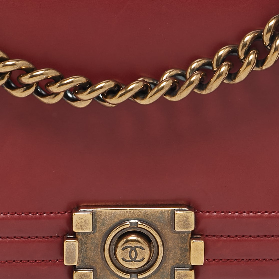 Introduced as a part of the Chanel Fall/Winter collection of 2011, the Boy flap bag embodies an alluring appeal and is complemented with exquisite details. This creation is meticulously crafted from leather and features side panelling, a chain leather shoulder strap, and gold tone hardware. Lined with nylon, the perfectly sized interior of this bag is secured by the signature CC lock on the front.Certified by The Luxury Closet - This item has gone through a detailed authentication process overseen by our experts. We offer a lifetime guarantee of authenticity on all our items. Import duties, taxes and charges are not included in the item price. These charges are the buyers responsibility. Please check with your country’s customs office to determine what these additional cost will be prior to buying. Our eBay Store About Us Contact Us Add to Favorite Sellers Chanel Red Leather Medium Boy Flap Bag $3113 Introduced as a part of the Chanel Fall/Winter collection of 2011, the Boy flap bag embodies an alluring appeal and is complemented with exquisite details. This creation is meticulously crafted from leather and features side panelling, a chain leather shoulder strap, and gold tone hardware. Lined with nylon, the perfectly sized interior of this bag is secured by the signature CC lock on the front. Product Details Brand Color Red Dimensions Height: 15 cm, Width: 6 cm, Length: 25 cm Material Leather Size Outsole Width Outsole Length Heel Height Includes Authenticity Card, Info Booklet, The Luxury Closet Packaging Certified by The Luxury Closet This item has gone through a detailed authentication process overseen by our experts. We offer a lifetime guarantee of authenticity on all our items. How We Check The in-house team of experts at The Luxury Closet is highly trained to verify the authenticity and the condition of the luxury products. They ensure that only 100% authentic items are put on sale.The evaluation process is unique with its own mix of assessment criteria and differs according to the category. Each item is evaluated based on the following combination of hallmarks, hardware, stitching, symmetry, material, craftsmanship, stamping, codes, hologram stickers, and packaging. Our authenticators also check if the items have been modified or amended (e.g., aftermarket diamonds, replaced batteries, repaired bags, etc.) International Buyers Import duties, taxes and charges are not included in the item price. These charges are the buyers responsibility. Please check with your country’s customs office to determine what these additional cost will be prior to buying.