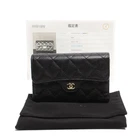 This Chanel wallet is absolutely stunning! The trifold design is sleek yet practical, with ample card slots and a smooth, luxurious feel. The craftsmanship is impeccable, and the iconic CC logo adds timeless elegance. Perfect size for everyday use—fits easily in any bag without being bulky. The seller was professional, shipping was fast, and the item arrived in pristine condition. Definitely worth the investment for anyone who loves high-quality designer accessories. A must-have for Chanel lovers!