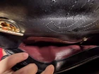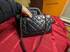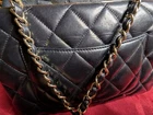 This Chanel Medium Trendy CC bag is in black lambskin leather with light gold tone hardware and has a front flap with signature CC turnlock closure, CHANEL light gold plaque on top of handbag, rear half moon pocket and a single interwoven black leather and light gold tone chain link shoulder strap. The interior is lined in burgundy lambskin leather and has two main open compartments; two small slip pockets on front wall, and one zip pocket on rear wall. Origin: France Condition: used Measurements approx: 10.25" width x 7" height x 5" depth; 12.5" shoulder strap drop No other item is included in this sale . This auction is for the Channel bag only . I am selling a lot of mine and my mom's belongings .Please check out my other items as I will be listing a lot of brand names items in the next few days. All items are authentic . Thanks for looking .