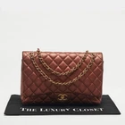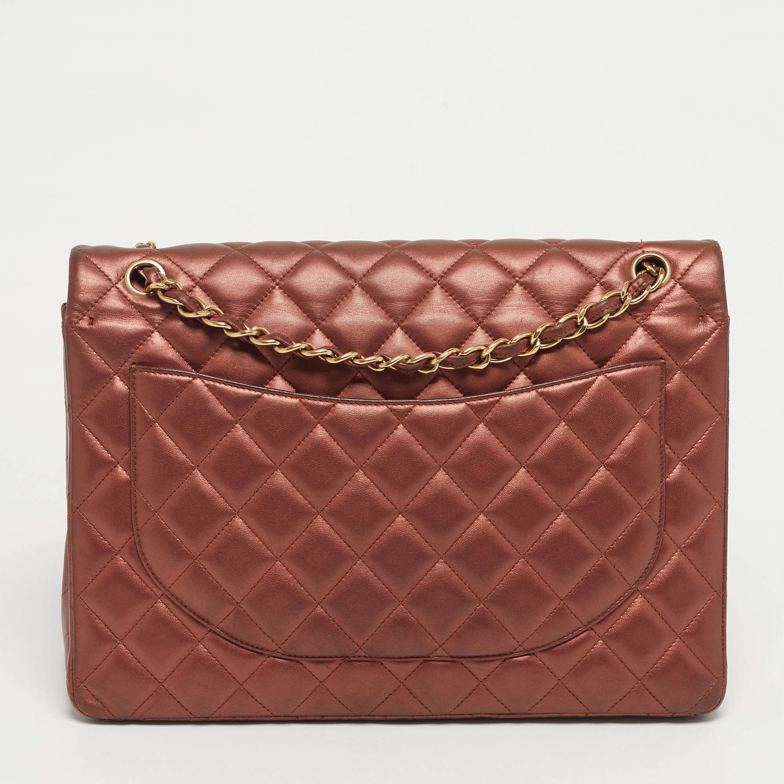 Our eBay Store About Us Contact Us Add to Favorite Sellers Chanel Metallic Brown Quilted Leather Maxi Classic Double Flap Bag Chanel’s Classic Double Flap takes on a striking presence in this maxi edition, crafted from metallic brown quilted leather. The luminous finish deepens the diamond pattern, giving the bag a rich character. With its generous proportions, iconic CC turn-lock, and chain strap, it offers both statement and heritage in a single design. Product Details Brand Chanel Includes The Luxury Closet Packaging Certified by The Luxury Closet This item has gone through a detailed authentication process overseen by our experts. We offer a lifetime guarantee of authenticity on all our items. How We Check The in-house team of experts at The Luxury Closet is highly trained to verify the authenticity and the condition of the luxury products. They ensure that only 100% authentic items are put on sale.The evaluation process is unique with its own mix of assessment criteria and differs according to the category. Each item is evaluated based on the following combination of hallmarks, hardware, stitching, symmetry, material, craftsmanship, stamping, codes, hologram stickers, and packaging. Our authenticators also check if the items have been modified or amended (e.g., aftermarket diamonds, replaced batteries, repaired bags, etc.) Please note that this handbag may have a perfume scent, as it was stored and packaged in Dubai where such fragrances are commonly used. International Buyers Import duties, taxes and charges are not included in the item price. These charges are the buyers responsibility. Please check with your country’s customs office to determine what these additional cost will be prior to buying.