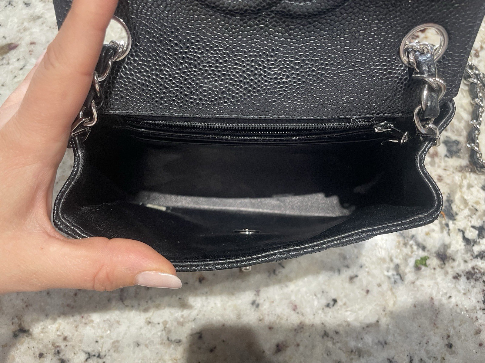 Absolutely lovely! In very good condition considering it’s a vintage. Please do look at the pics carefully as they portray the condition of the bag. Silver hardware with caviar leather 😍 sticker intact but unfortunately no dustbag (it will be shipped in a generic dustbag) I have a certificate of authenticity from Real Authenticators (from previous owner) The perfect bag for the mini bag trend! Small but mighty! I can fit my phone (regular size iPhone) LV coin purse, lipstick, napkins, car keys and more! Happy shopping!