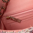 This crossbody bag features a tweed body, a leather woven chain shoulder strap, a front flap with interlocking Cs and twist lock closure, an exterior back slip pocket, and interior zip and slip pockets. Condition Details: Exterior Back stained with Other. Exterior Bottom Worn. Exterior Bottom stained with Other. Lock Scratched. Exterior Corners Worn. Exterior Front Worn. Exterior Front stained with Other. Exterior Handle Worn. Interior Lining Scratched. Practical Attachment Scratched. Exterior Side Worn. Exterior Top stained with Other. Dimensions: Length: 14.000 cm Width: 20.000 cm Height: 7.000 cm SKU: 101020310 International Buyers - Please Note: Import duties, taxes, and customs fees are not included in the item price. These are the buyer's responsibility. Please check with your local customs office to understand any extra costs before buying. These fees are usually collected by the shipping company or when you pick up your item - they are not extra shipping charges.