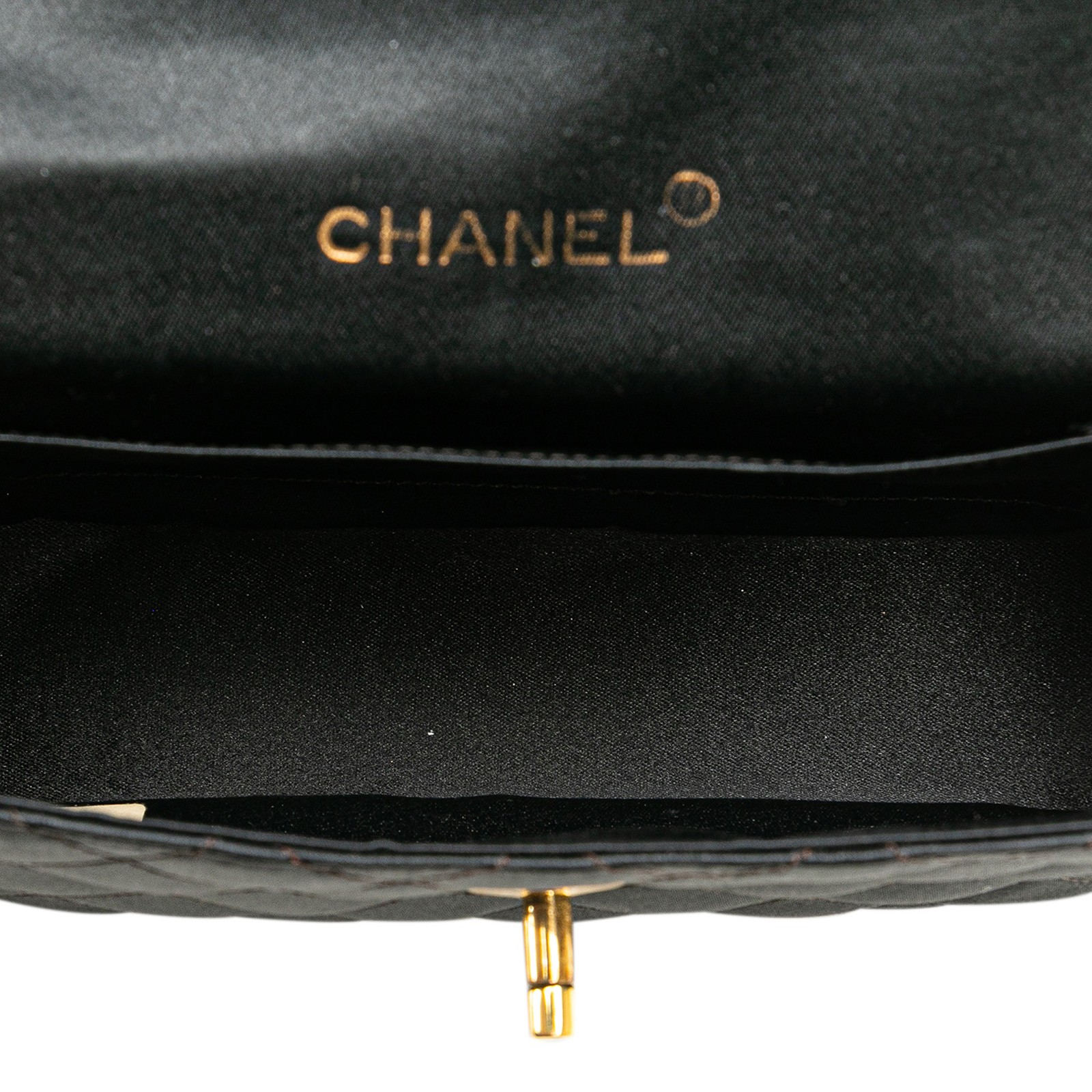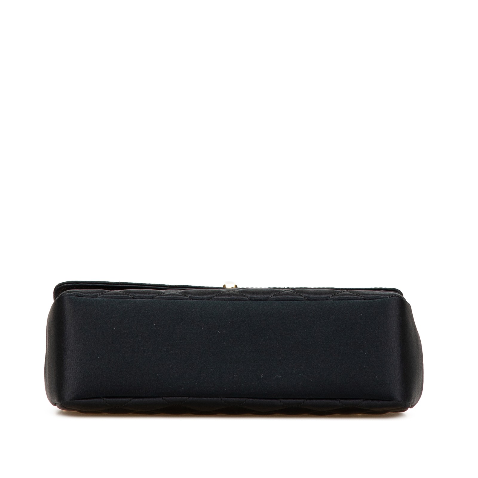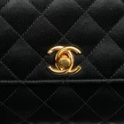 This flap bag features a quilted satin body, a cord woven chain link shoulder strap, a front flap with turn lock closure, and an interior slip pocket. Condition Details: Exterior Back Creased. Lock Rusty/Tarnished, Scratched. Embellishment Scratched. Exterior Front Creased. Exterior Handle Worn. Exterior Handle stained with Other. Interior Pocket stained with Other. Interior Lining Creased. Interior Lining stained with Other. Practical Attachment Scratched. Exterior Side stained with Other. Dimensions: Length: 11.000 cm Width: 18.000 cm Height: 5.500 cm SKU: 101016426 International Buyers - Please Note: Import duties, taxes, and customs fees are not included in the item price. These are the buyer's responsibility. Please check with your local customs office to understand any extra costs before buying. These fees are usually collected by the shipping company or when you pick up your item - they are not extra shipping charges.