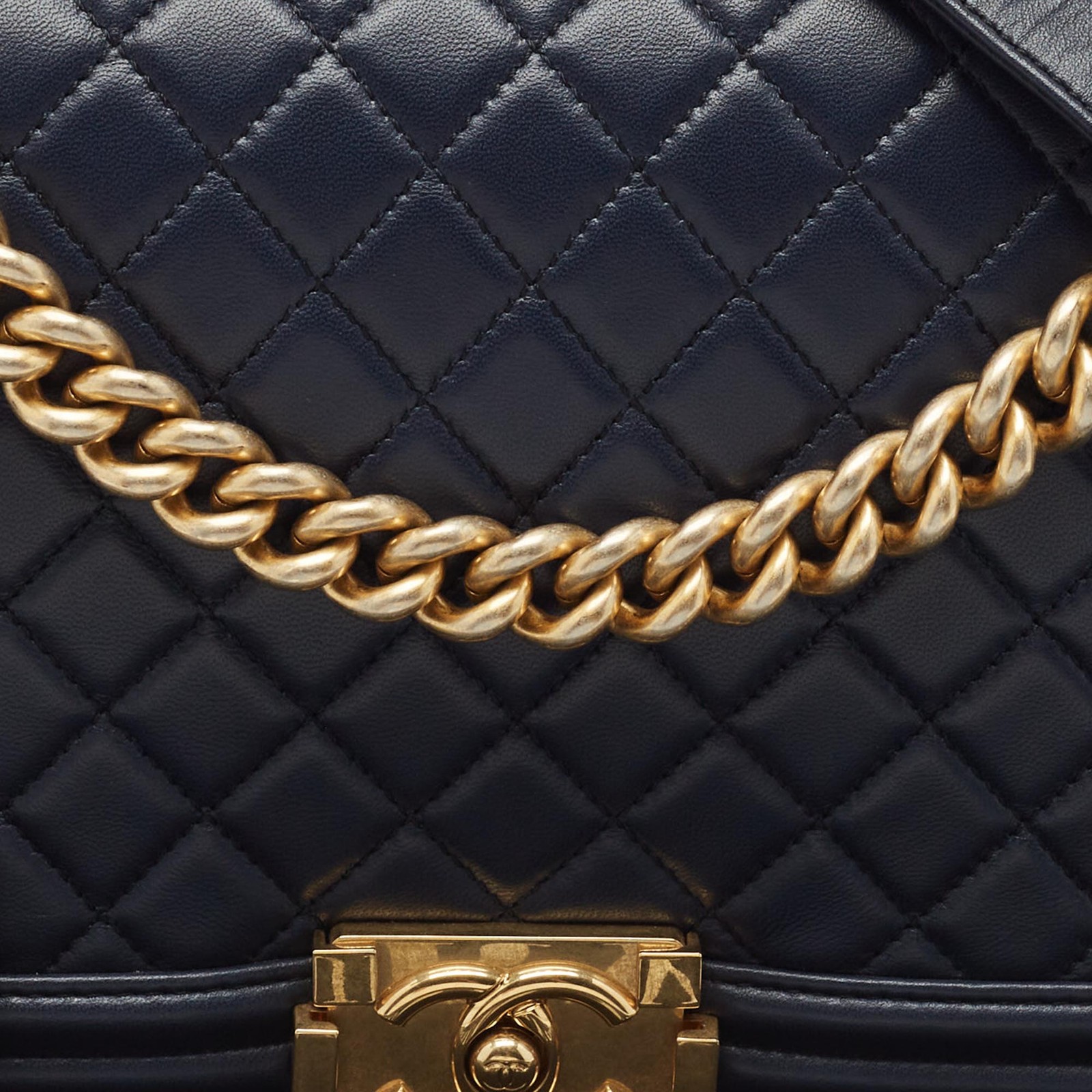 Modern and edgy with a nod to classic Chanel, this navy hued piece features signature quilting and bold, industrial inspired hardware. The medium Boy bag adds instant polish to any ensemble.Certified by The Luxury Closet - This item has gone through a detailed authentication process overseen by our experts. We offer a lifetime guarantee of authenticity on all our items. Import duties, taxes and charges are not included in the item price. These charges are the buyers responsibility. Please check with your country’s customs office to determine what these additional cost will be prior to buying. Our eBay Store About Us Contact Us Add to Favorite Sellers Chanel Navy Blue Quilted Leather New Medium Boy Flap Bag $4739.9 Modern and edgy with a nod to classic Chanel, this navy hued piece features signature quilting and bold, industrial inspired hardware. The medium Boy bag adds instant polish to any ensemble. Product Details Brand Color Navy Blue Dimensions Material Leather Size Large Outsole Width Outsole Length Heel Height Includes Certified by The Luxury Closet This item has gone through a detailed authentication process overseen by our experts. We offer a lifetime guarantee of authenticity on all our items. How We Check The in-house team of experts at The Luxury Closet is highly trained to verify the authenticity and the condition of the luxury products. They ensure that only 100% authentic items are put on sale.The evaluation process is unique with its own mix of assessment criteria and differs according to the category. Each item is evaluated based on the following combination of hallmarks, hardware, stitching, symmetry, material, craftsmanship, stamping, codes, hologram stickers, and packaging. Our authenticators also check if the items have been modified or amended (e.g., aftermarket diamonds, replaced batteries, repaired bags, etc.) International Buyers Import duties, taxes and charges are not included in the item price. These charges are the buyers responsibility. Please check with your country’s customs office to determine what these additional cost will be prior to buying.