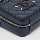 Our eBay Store About Us Contact Us Add to Favorite Sellers Chanel Navy BlueBlack Quilted Caviar Leather Small CC Filigree Vanity Case Bag Indulge in timeless elegance with this Chanel bag, meticulously crafted to perfection. Its exquisite details and luxurious materials make it a statement piece for any sophisticated ensemble. Product Details Brand Chanel Includes The Luxury Closet Packaging Certified by The Luxury Closet This item has gone through a detailed authentication process overseen by our experts. We offer a lifetime guarantee of authenticity on all our items. How We Check The in-house team of experts at The Luxury Closet is highly trained to verify the authenticity and the condition of the luxury products. They ensure that only 100% authentic items are put on sale.The evaluation process is unique with its own mix of assessment criteria and differs according to the category. Each item is evaluated based on the following combination of hallmarks, hardware, stitching, symmetry, material, craftsmanship, stamping, codes, hologram stickers, and packaging. Our authenticators also check if the items have been modified or amended (e.g., aftermarket diamonds, replaced batteries, repaired bags, etc.) Please note that this handbag may have a perfume scent, as it was stored and packaged in Dubai where such fragrances are commonly used. International Buyers Import duties, taxes and charges are not included in the item price. These charges are the buyers responsibility. Please check with your country’s customs office to determine what these additional cost will be prior to buying.