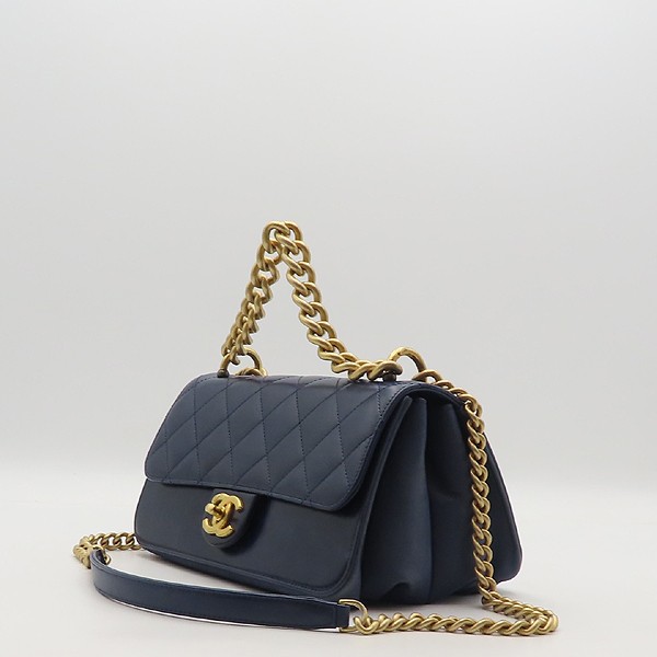 Size: Width 24CM/Height 14CM/Width 11CM/Handle Height 9CM/Strap Height 44CM Color: Navy Series Accessories: Guarantee Card Chanel (Chanel) A91864 Navy Calfskin Gold Chain Striped Accordion Flap Chain Tote Bag + Shoulder Bag 2WAY [Bundang Jeongja Branch]. This is the unit of 23. The material is leather. There is a zipper pocket on the inside. **Due to the nature of second-hand luxury goods, there may be stains not visible in the image. **