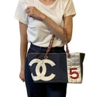 Chanel No.5 Tote Bag Navy Canvas CC Logo Shoulder Used From Japan Key Features ✔ Introducing the Chanel No.5 Tote Bag, a stylish and iconic accessory from the renowned luxury brand . Crafted from navy canvas with a bold CC logo and accented by a striking red chain strap, this shoulder bag combines sporty elegance with timeless sophistication. Perfect for everyday use or as a statement piece to elevate your outfit, it offers both functionality and distinctive design. ✔ This vintage Chanel tote features a spacious interior with a silver vinyl lining, a secure zipper closure, and a comfortable chain shoulder strap that can be worn over the shoulder. The bag measures approximately 42cm in width, 20cm in height, with a 15cm depth, and a strap drop of 21cm, making it versatile for various styling options. The condition is rated AB, indicating it is in good condition with minor signs of use, including slight wear on the leather handle and corners, but no significant stains or damages. The bag includes a Chanel logo patch and serial seal for authenticity, and it is free from odors, ensuring a clean and well-maintained appearance. ✔ Key features include a smooth zipper, firmly fixed chain handle, and a durable canvas material with well-preserved leather patches. Please review all photos carefully to assess the condition . The item includes only the bag itself, with no box or dust bag. ✔ Item Specifics: ✔ C: Brand : CHANEL ✔ C:Category: Tote Bag / Shoulder Bag ✔ C:Model: No.5 Tote Bag ✔ C:Material: Canvas and Leather ✔ C: Color : Navy ✔ C: Size : Width 42cm, Height 20cm, Depth 15cm ✔ C:Strap Length: Drop 21cm, Shoulder Compatible ✔ C: Condition : AB (Good condition , minor signs of use) ✔ C:Country of Origin: Japan ✔ C:Authenticity: Authentic with serial seal and logo patch ✔ C:Closure: Zipper ✔ C:Interior Lining: Silver vinyl with Chanel logo ✔ C:Additional Features: CC logo, red chain strap Specifications Brand Chanel Country France Department Ladies Additional Description Item Title Chanel No.5 Tote Bag Shoulder Cc Logo Payment Supports managed payments Please pay within 5 days after auction is finished. About Us We are located in Japan. It's our pleasure to make you happy by proposing our recommend item. If you have any questions or request about items, please feel free to ask us. International Buyers - Please Note: -Import duties, taxes, and charges are not included in the item price or shipping charges. These charges are the buyer's responsibility. -Please check with your country's customs office to determine what these additional costs will be prior to bidding/buying. -These charges are normally collected by the delivering freight (shipping) company or when you pick the item up - do not confuse them for additional shipping charges. -We do not mark merchandise values below value or mark items as - gifts - The US and International government regulations prohibit such behavior. Thank you for your understanding.