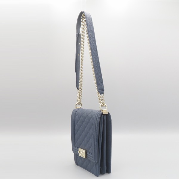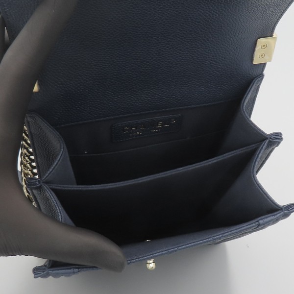 Size: 16 cm width/ 20 cm/ width 7 cm/ strap height 52 cm; color: navy accessories: dust Chanel (Chanel) AS0130 navy caviar skin gold Boy Chanel flap crossbody bag [Gangnam Main Store]. This is a unit of 29. The material is leather. There is a pocket on the inside. **Due to the nature of second-hand luxury goods, there may be stains not visible in the image. **