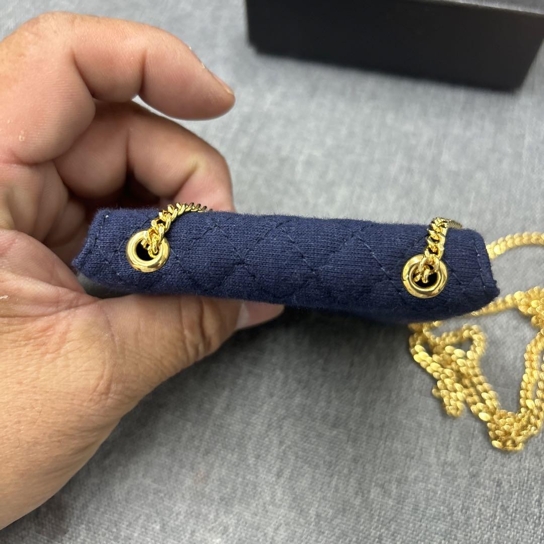 This little Chanel pouch is a stunning piece—perfect size for essentials, and the navy color is so elegant. The chain adds a chic touch, and the craftsmanship feels luxurious. Shipping was smooth, and the item arrived in pristine condition. Love how versatile it is—dress it up or down! A must-have for any fashion lover.