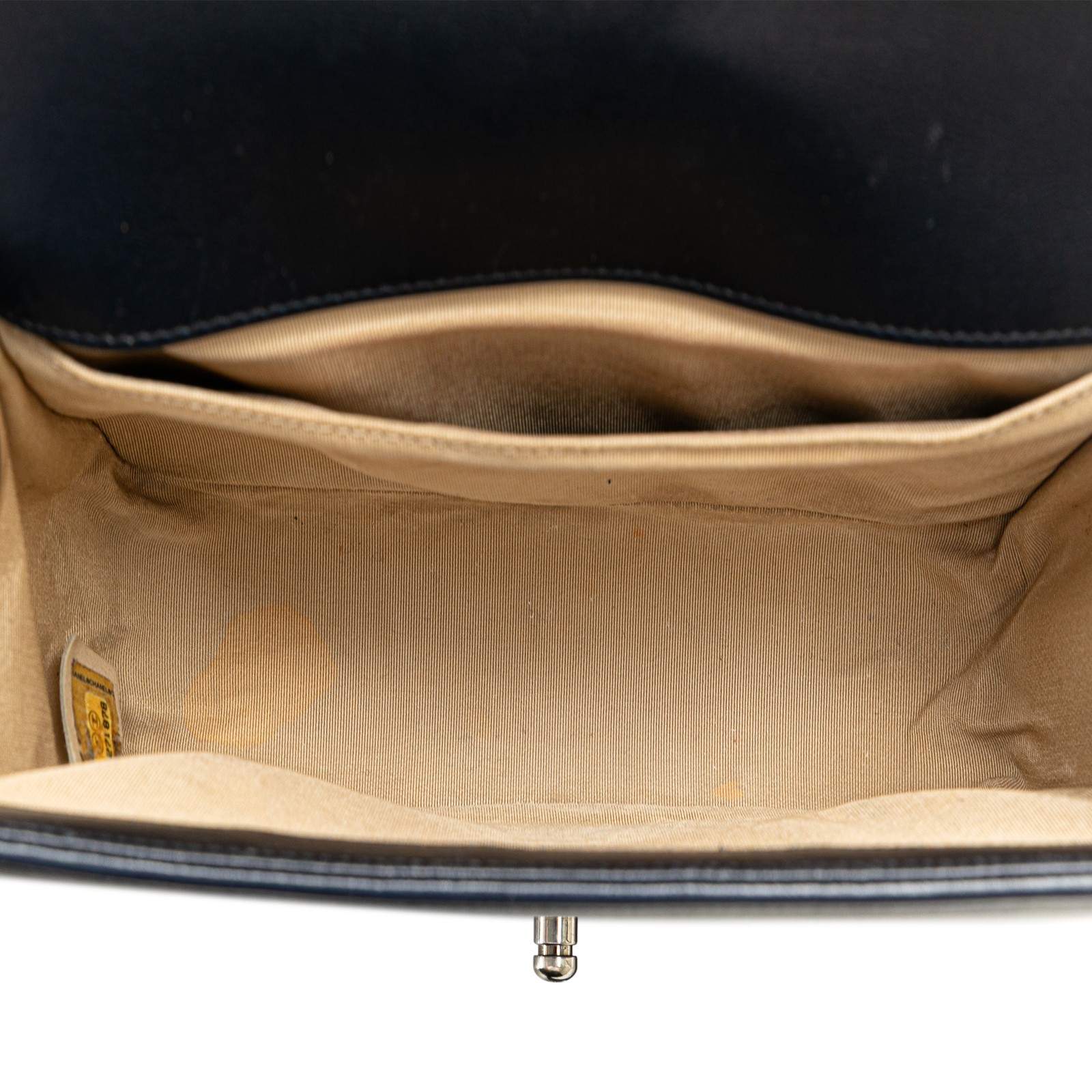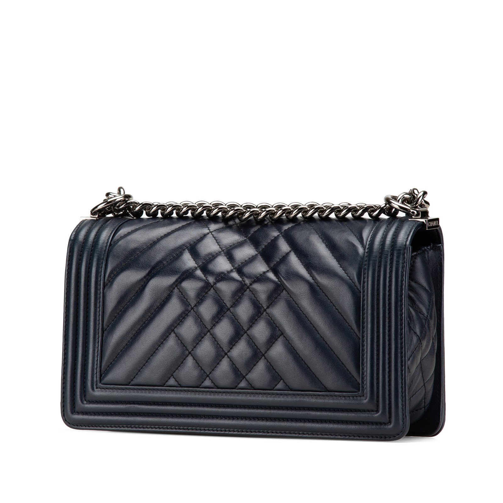 The Boy Flap features a quilted lambskin leather body, a chain link shoulder strap with leather guard, a front flap with push lock closure, and an interior slip pocket. Condition Details: Exterior Back Creased. Exterior Back stained with Other. Exterior Bottom Creased. Exterior Bottom stained with Other. Lock Scratched. Embellishment Scratched. Exterior Front stained with Other. Exterior Handle Worn. Exterior Handle stained with Other. Interior Pocket stained with Other. Interior Lining Creased. Interior Lining stained with Other. Practical Attachment Scratched. Exterior Side Creased. Exterior Top Creased. Dimensions: Length: 14.000 cm Width: 24.500 cm Height: 7.000 cm SKU: 101023389 International Buyers - Please Note: Import duties, taxes, and customs fees are not included in the item price. These are the buyer's responsibility. Please check with your local customs office to understand any extra costs before buying. These fees are usually collected by the shipping company or when you pick up your item - they are not extra shipping charges.