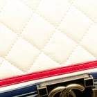 The Boy features a quilted lambskin leather body, a gold-tone chain strap, a top flap with turn lock closure, and interior slip pockets. Condition Details: Exterior Back Out Of Shape. Exterior Back stained with Other. Exterior Bottom Scratched. Lock Scratched. Exterior Corners Worn. Embellishment Rusty/Tarnished, Scratched. Exterior Front Out Of Shape. Exterior Handle Worn. Interior Lining Scratched, Worn. Interior Lining stained with Other. Practical Attachment Rusty/Tarnished, Scratched. Dimensions: Length: 15.000 cm Width: 25.000 cm Height: 7.000 cm SKU: 101017728 International Buyers - Please Note: Import duties, taxes, and customs fees are not included in the item price. These are the buyer's responsibility. Please check with your local customs office to understand any extra costs before buying. These fees are usually collected by the shipping company or when you pick up your item - they are not extra shipping charges.