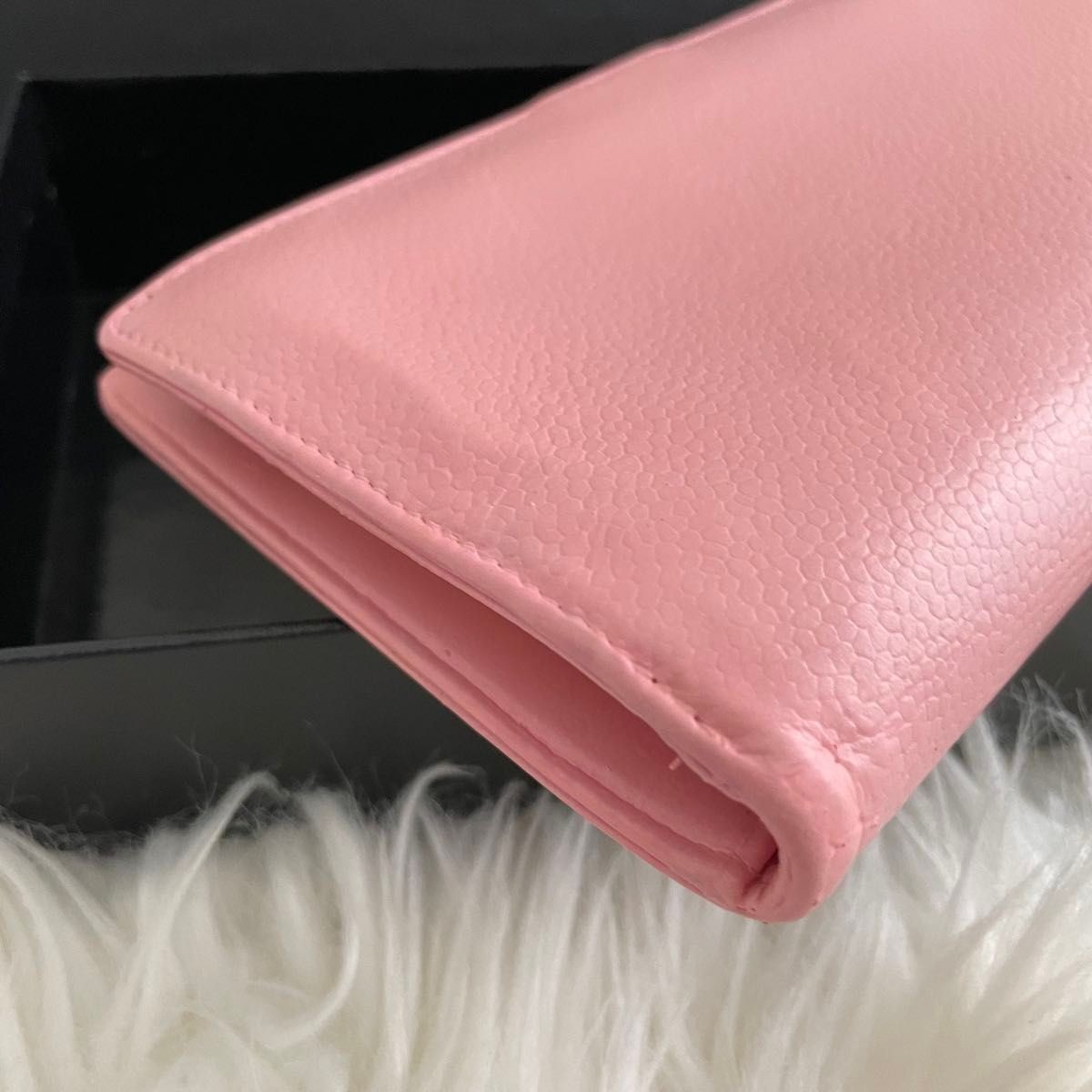 Absolutely love this chic Chanel wallet! The soft pink caviar leather is luxurious yet durable, and the Coco Mark adds such elegance. Plenty of card slots and compartments keep everything organized, while the clutch design makes it versatile for day or night. The craftsmanship is flawless, and it arrived in perfect condition—definitely a standout piece in my collection. Highly recommend!