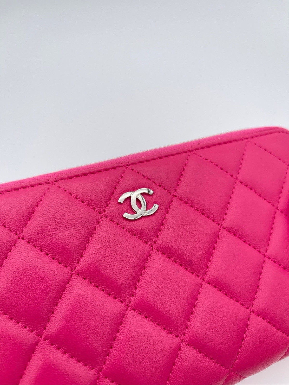 This Chanel wallet is absolutely stunning! The soft pink quilted leather is so elegant, and the quality is top-notch. It fits all my cards and cash perfectly while keeping everything secure with the smooth zipper. The craftsmanship is impeccable, and it adds a touch of luxury to my everyday look. Definitely worth the investment—I get compliments every time I use it!