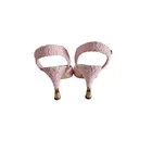 Chanel Pink Terry Cloth CC Heels Ankle Strap Sandal, Size 41C Attributes Material: Terry Cloth Color: Pink Size: 41C Condition: Good condition, has toe mark print