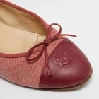Our eBay Store About Us Contact Us Add to Favorite Sellers Chanel PinkBurgundy Tweed and Leather CC Cap Toe Bow Ballet Flats Size 39 These Chanel ballet flats rework the house’s codes in pink and burgundy tweed with classic cap toe and bow details. Finished with CC accents, they’re a charming update to everyday footwear with unmistakable Parisian flair. Product Details Brand Chanel Color Pink/Burgundy Includes The Luxury Closet Packaging Outsole Length 26.5 cm Outsole Width 8 cm Size 39 Certified by The Luxury Closet This item has gone through a detailed authentication process overseen by our experts. We offer a lifetime guarantee of authenticity on all our items. How We Check The in-house team of experts at The Luxury Closet is highly trained to verify the authenticity and the condition of the luxury products. They ensure that only 100% authentic items are put on sale.The evaluation process is unique with its own mix of assessment criteria and differs according to the category. Each item is evaluated based on the following combination of hallmarks, hardware, stitching, symmetry, material, craftsmanship, stamping, codes, hologram stickers, and packaging. Our authenticators also check if the items have been modified or amended (e.g., aftermarket diamonds, replaced batteries, repaired bags, etc.) International Buyers Import duties, taxes and charges are not included in the item price. These charges are the buyers responsibility. Please check with your country’s customs office to determine what these additional cost will be prior to buying.