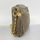 This Chanel shoulder bag is absolutely stunning! The quilted lambskin in rich brown with gold hardware gives it a luxurious, timeless look. The fringe detail adds a playful touch while keeping it elegant. The size is perfect for everyday use, and the chain strap makes it versatile for day or night. Even though it's pre-owned, the condition is excellent—soft leather, sturdy zipper, and no major flaws. Love the open outer pocket for quick access and the inner zipper pocket for security. A true classic that elevates any outfit!