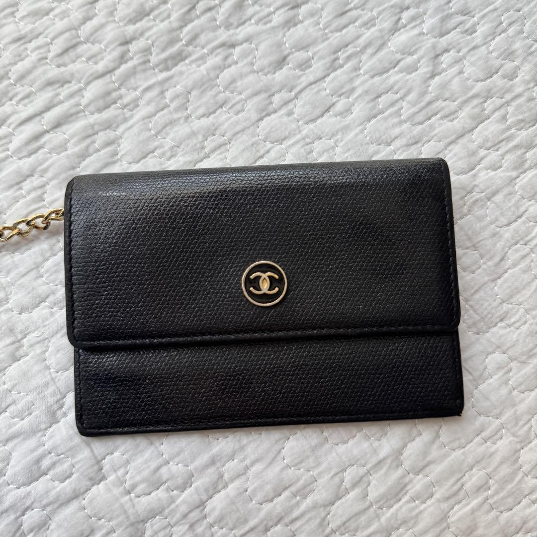 Chanel Rare Coco Button With Chain Coin Card Case Black