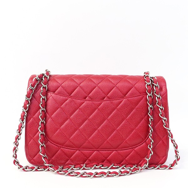 Size: Width 30CM/Height 18.5CM/Width 9CM/Handle Height 33CM Color: Red Accessories: Dust Chanel (Chanel) A58600 Red Caviar Skin Classic Jumbo L Size Silver Logo Chain Flap Shoulder Bag [Daegu Dongseong-ro Store]. It is in units of 20. The material is leather. There is a small multi-purpose storage pocket on the inside. **Due to the nature of second-hand luxury goods, there may be stains not visible in the image. **