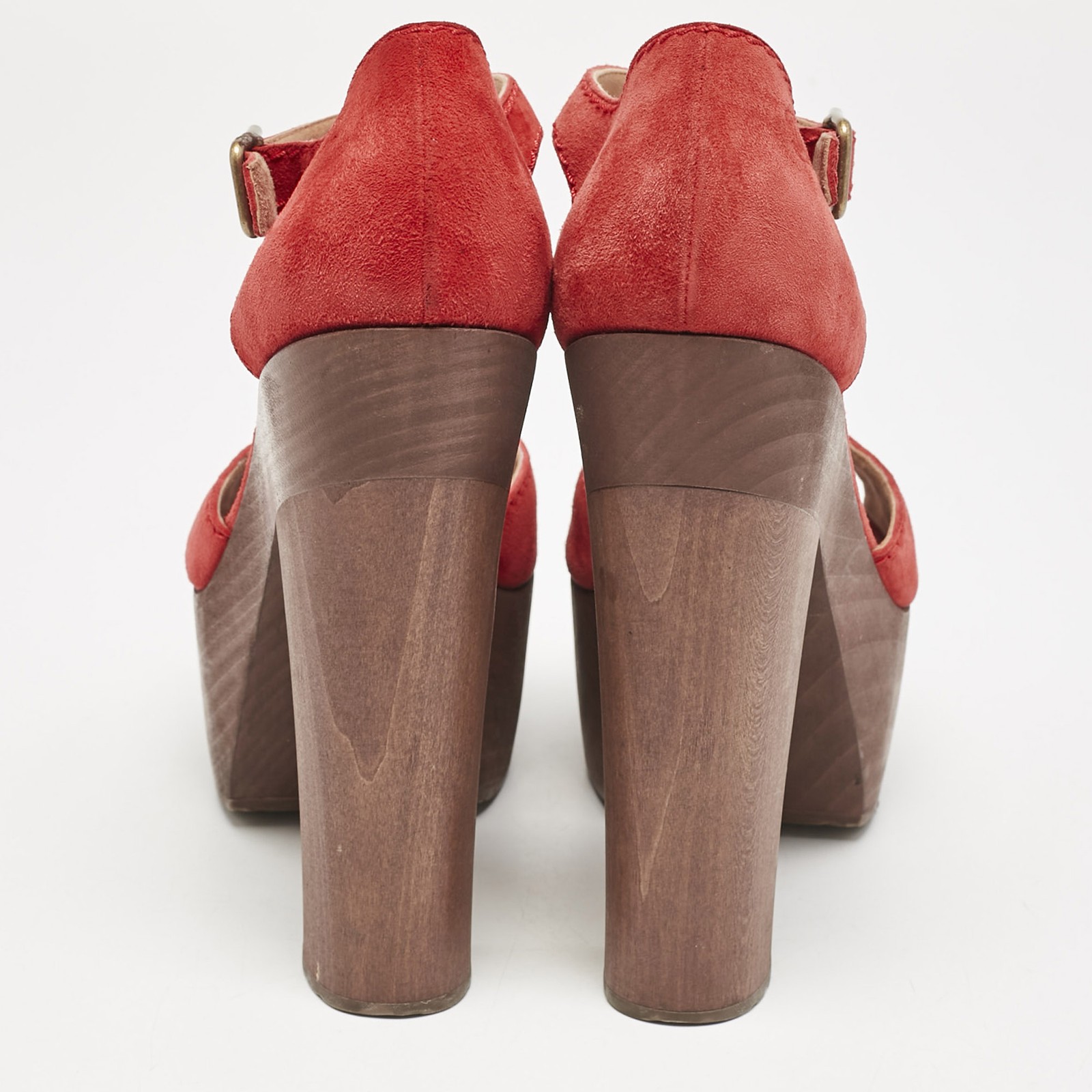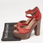 These magnificent sandals from Chanel are set on solid wooden platforms and 15cm heels. They have been crafted from red suede and styled with open toes and buckled ankle straps. They are complete with comfortable leather lined insoles and will look great with dresses and jumpsuits.Certified by The Luxury Closet - This item has gone through a detailed authentication process overseen by our experts. We offer a lifetime guarantee of authenticity on all our items. Import duties, taxes and charges are not included in the item price. These charges are the buyers responsibility. Please check with your country’s customs office to determine what these additional cost will be prior to buying. Our eBay Store About Us Contact Us Add to Favorite Sellers Chanel Red Suede and Wood Block Heel Platform Ankle Strap Sandals Size 38 $324.5 These magnificent sandals from Chanel are set on solid wooden platforms and 15cm heels. They have been crafted from red suede and styled with open toes and buckled ankle straps. They are complete with comfortable leather lined insoles and will look great with dresses and jumpsuits. Product Details Brand Color Red Dimensions Material Suede, Wood Size 38 Outsole Width Outsole Length Heel Height Includes Certified by The Luxury Closet This item has gone through a detailed authentication process overseen by our experts. We offer a lifetime guarantee of authenticity on all our items. How We Check The in-house team of experts at The Luxury Closet is highly trained to verify the authenticity and the condition of the luxury products. They ensure that only 100% authentic items are put on sale.The evaluation process is unique with its own mix of assessment criteria and differs according to the category. Each item is evaluated based on the following combination of hallmarks, hardware, stitching, symmetry, material, craftsmanship, stamping, codes, hologram stickers, and packaging. Our authenticators also check if the items have been modified or amended (e.g., aftermarket diamonds, replaced batteries, repaired bags, etc.) International Buyers Import duties, taxes and charges are not included in the item price. These charges are the buyers responsibility. Please check with your country’s customs office to determine what these additional cost will be prior to buying.