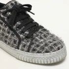 Sporty meets sparkle in these eye catching Chanel low top sneakers, crafted from shimmering silver and black Lurex fabric. Featuring the iconic interlocking CC logo and a sleek silhouette, they deliver glamour infused comfort with every step—perfect for elevating your off duty looks with Parisian edge.Certified by The Luxury Closet - This item has gone through a detailed authentication process overseen by our experts. We offer a lifetime guarantee of authenticity on all our items. Import duties, taxes and charges are not included in the item price. These charges are the buyers responsibility. Please check with your country’s customs office to determine what these additional cost will be prior to buying. Our eBay Store About Us Contact Us Add to Favorite Sellers Chanel Silver/Black Lurex Fabric CC Low Top Sneakers Size 37 $254.1 Sporty meets sparkle in these eye catching Chanel low top sneakers, crafted from shimmering silver and black Lurex fabric. Featuring the iconic interlocking CC logo and a sleek silhouette, they deliver glamour infused comfort with every step—perfect for elevating your off duty looks with Parisian edge. Product Details Brand Color Silver Dimensions Material Lurex Fabric Size 37 Outsole Width Outsole Length Heel Height Includes Certified by The Luxury Closet This item has gone through a detailed authentication process overseen by our experts. We offer a lifetime guarantee of authenticity on all our items. How We Check The in-house team of experts at The Luxury Closet is highly trained to verify the authenticity and the condition of the luxury products. They ensure that only 100% authentic items are put on sale.The evaluation process is unique with its own mix of assessment criteria and differs according to the category. Each item is evaluated based on the following combination of hallmarks, hardware, stitching, symmetry, material, craftsmanship, stamping, codes, hologram stickers, and packaging. Our authenticators also check if the items have been modified or amended (e.g., aftermarket diamonds, replaced batteries, repaired bags, etc.) International Buyers Import duties, taxes and charges are not included in the item price. These charges are the buyers responsibility. Please check with your country’s customs office to determine what these additional cost will be prior to buying.