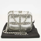 Sculpted in metallic silver leather, the Chanel Chain Me Box clutch is a bold statement accessory. Finished with chunky chain trim and a compact boxy form, it channels edgy elegance with signature Chanel flair.Certified by The Luxury Closet - This item has gone through a detailed authentication process overseen by our experts. We offer a lifetime guarantee of authenticity on all our items. Import duties, taxes and charges are not included in the item price. These charges are the buyers responsibility. Please check with your country’s customs office to determine what these additional cost will be prior to buying. Our eBay Store About Us Contact Us Add to Favorite Sellers Chanel Silver Leather Chain Me Box Chain Clutch $1886.5 Sculpted in metallic silver leather, the Chanel Chain Me Box clutch is a bold statement accessory. Finished with chunky chain trim and a compact boxy form, it channels edgy elegance with signature Chanel flair. Product Details Brand Color Silver Dimensions Material Leather Size Outsole Width Outsole Length Heel Height Includes Certified by The Luxury Closet This item has gone through a detailed authentication process overseen by our experts. We offer a lifetime guarantee of authenticity on all our items. How We Check The in-house team of experts at The Luxury Closet is highly trained to verify the authenticity and the condition of the luxury products. They ensure that only 100% authentic items are put on sale.The evaluation process is unique with its own mix of assessment criteria and differs according to the category. Each item is evaluated based on the following combination of hallmarks, hardware, stitching, symmetry, material, craftsmanship, stamping, codes, hologram stickers, and packaging. Our authenticators also check if the items have been modified or amended (e.g., aftermarket diamonds, replaced batteries, repaired bags, etc.) International Buyers Import duties, taxes and charges are not included in the item price. These charges are the buyers responsibility. Please check with your country’s customs office to determine what these additional cost will be prior to buying.